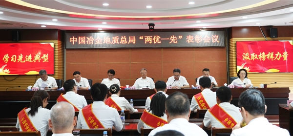 王文军宣读了总局党委对张学文等28名共产党员、吴伟英等18名党务工作者、中冶地勘岩土工程有限责任公司天津分公司党支部等26个基层党组织的表彰决定。牛建华为“中央企业优秀共产党员”荣誉称号获得者山东正元地质勘查院张保涛颁发奖章和证书;总局领导班子成员为总局“两优一先”代表颁发证书和奖牌。总局“两优一先”代表山东局张保涛、物勘院刘洁、中南局黄屹分别作了交流发言。