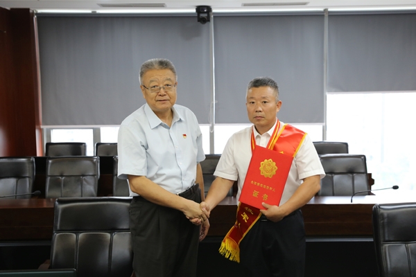 牛建华代表总局党委对李利民同志荣获“全国模范退役军人”荣誉称号表示祝贺。总局党委要求广大干部职工要以李利民同志为榜样,大力弘扬忠于职守、爱岗敬业的高尚情怀,无私奉献、奋勇前进的坚定信念,脚踏实地、埋头苦干的优良作风,见贤思齐,争当先锋,掀起争先创优的学习热潮,努力在新时代新征程的改革创新、攻坚克难中展现新担当作出新贡献。