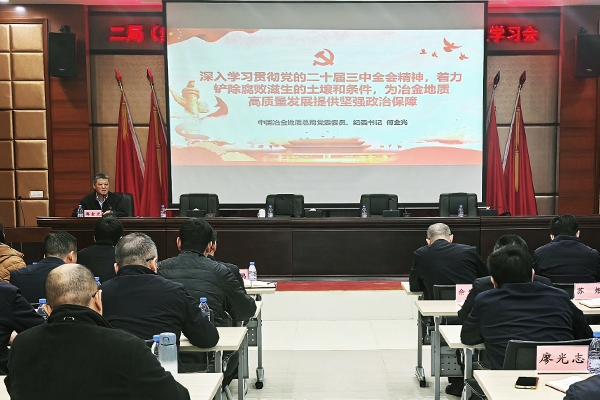 傅金光以《深入学习贯彻党的二十届三中全会精神,着力铲除腐败滋生的土壤和条件,为冶金地质高质量发展提供坚强政治保障》为题,联系冶金地质、二局改革发展党建和全面从严治党实际,对党的二十届三中全会精神进行了深入宣讲,对深化学习领会、抓好贯彻落实提出了明确要求,并进行了集体廉洁提醒谈话。他强调,要深刻认识把握党的二十届三中全会的重大意义,全面理解把握全会的主旨要义,切实增强推进全面深化改革的思想自觉、政治自觉和行动自觉。要完整准确把握全会的主要内容、核心要义和精神实质,坚定信心、坚定不移推进深化改革进程,在国家战略发展布局中发挥冶金地质更大的责任担当。要深入推进冶金地质党风廉政建设和反腐败工作,着力铲除腐败滋生的土壤和条件,为冶金地质深化改革提供坚强政治保障。