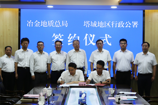 8月8日,总局与新疆维吾尔自治区塔城地区行政公署签署战略合作协议,这是深入贯彻落实国家矿产资源安全保障战略、完整准确全面贯彻新时代党的治疆方略的重要举措,是深化央地合作,服务地方经济社会发展的具体行动。总局党委书记牛建华,党委副书记、局长王文军,塔城地区地委书记支现伟出席签约仪式。塔城地委委员于晓栋,总局党委委员、副局长李伟,副局长潘树仁,副局长杨占东出席签约仪式。总局局长助理陈伟出席签约仪式。
