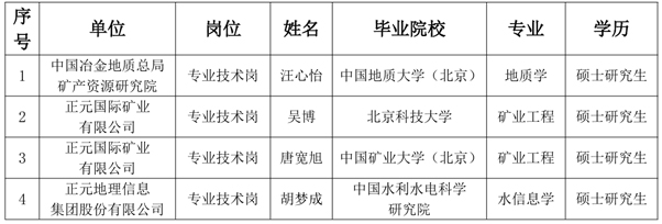 中国冶金地质总局在京单位拟接收2025年度应届毕业生情况的公示